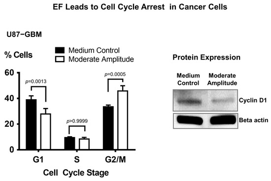 3.6. Electric Field Stimulation Leads to Cell Cycle Arrest in Cancer Cells
