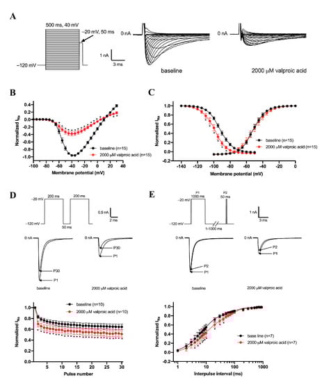 3.3. Effects of Valproic Acid (2000 μM) on Gating Properties of Nav1.5 Channels