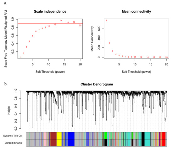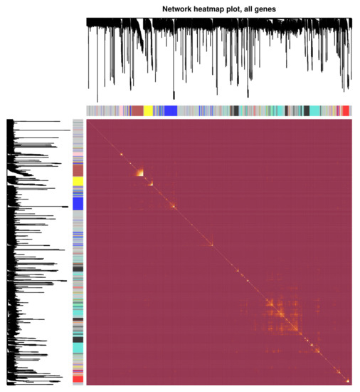 - Langfelder, P.; Horvath, S. WGCNA: An R package for weighted correlation network analysis. BMC Bioinform. 2008, 9, 559. [Google Scholar] [CrossRef]