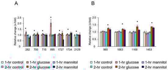 Protein ontology classification was performed by importing proteins into the protein analysis using the Universal Protein Resource (UniProt) database (https://www.uniprot.org/; European Bioinformatics Institute, Cambridge, UK: SIM Swiss Institute Bioinformatics, Geneva, Switzerland: Protein Information Resource, Washington, DC, USA) (accessed on 20 December 2021). Proteins that showed changes in their expression levels after incubation with glucose for 2 h were described according to their associated molecular functions, biological processes, and locations.