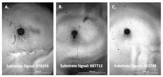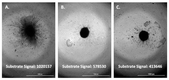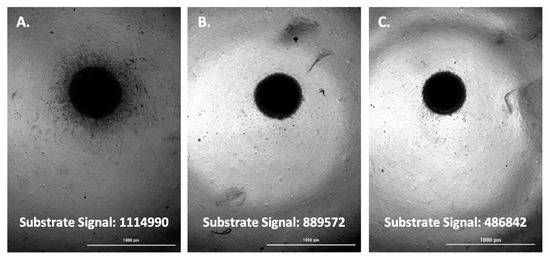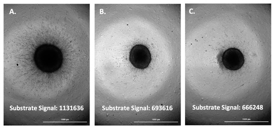 Upon comparison of the substrate signal with associated images, it was observed that inhibitor wells triggered to be imaged by emitting a lower substrate signal do in fact demonstrate a lower level of spheroid invasion. The results serve to validate the method as a viable way to quickly screen for inhibitors of glioma spheroid invasion.