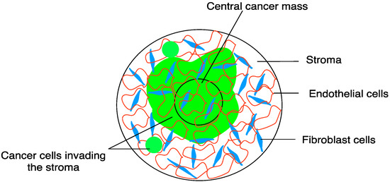 Amann et al. (2017) [22] on the other hand used the hanging drop technology to develop a tri-culture model consisting of non-small cell lung cancer (NSCLC) cell lines (A549 and Colo699) as well as a fibroblast cell line (SV 80) and two different endothelial cell lines (CC-2527 and CC-2935) to study the effect of anti-angiogenic drugs. Endothelial cells formed small colonies in microtissues containing Colo699 cells, and tube-like structures mostly in the stromal area of microtissues containing A549, suggesting that there are cancer cell line–specific cross-talk events. Furthermore, the use of antiangiogenic drugs, such as bevacizumab and nindetanib, resulted in a significant reduction in the migration of endothelial cells into microtissues.