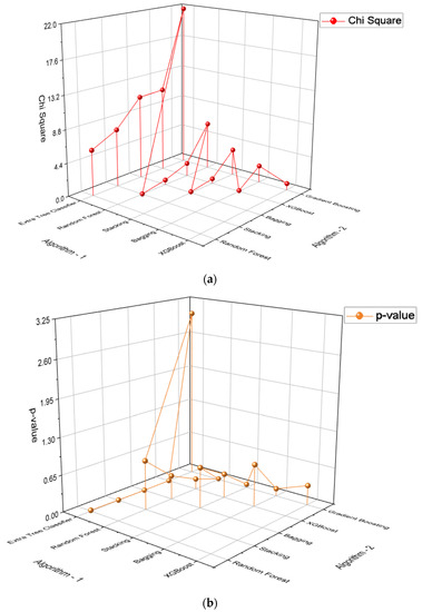 McNemar’s test between the models. (a) Chi-squared test. (b) p value test.