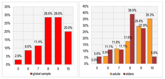 The patients’ initial stress level on Souleroy scale (globally and separated by age group; 0—no efficiency to 10—maximum efficiency).