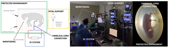 The concept of an AP is 60 years old [7]. After initial advances in the 1960s and 1970s, research was partially abandoned in the 1980s with the improvements in neonatal care. However, it was revived later, focusing on extremely or near-viable preterm newborns. In recent years, several groups [8,9] have provided evidence of the ability to maintain a fetus with AP support in experimental conditions. Flake et al. in Philadelphia [8] reported up to four weeks survival in an AP system. The pioneering work of these groups has paved the way for the first clinical trials in the coming years and has raised the need for further experimental research to refine knowledge on the impact on fetal and neonatal development. The development of an experimental AP system represents a great research challenge. Nonetheless, there is scarcely any research published providing information on the details and main difficulties found on setting up such a system.