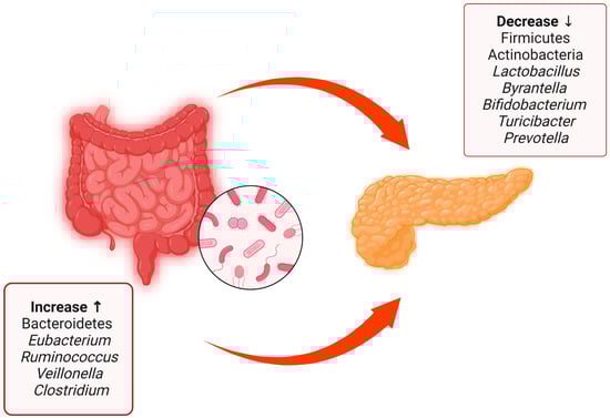 This interesting article summarizes the main evidence regarding the different compositions of the gut microbiota between patients with type 1 diabetes mellitus and healthy patients [] (Figure 2).