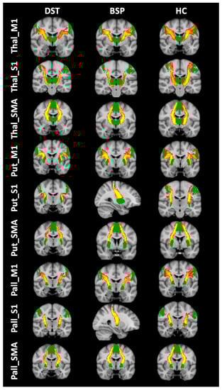 - Milardi, D.; Gaeta, M.; Marino, S.; Arrigo, A.; Vaccarino, G.; Mormina, E.; Rizzo, G.; Milazzo, C.; Finocchio, G.; Baglieri, A.; et al. Basal Ganglia Network by Constrained Spherical Deconvolution: A Possible Cortico-Pallidal Pathway? Mov. Disord. 2015, 30, 342–349. [Google Scholar] [CrossRef]