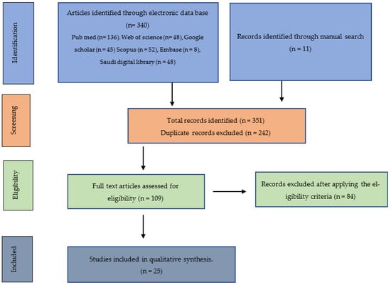 At this juncture, after selecting articles based on their titles and abstracts, 351 relevant articles were retrieved. After removing 242 duplicate articles, only 106 papers met the qualifying requirements for inclusion in this review article.