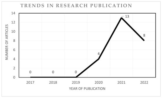 The research trend shows an increase in the number of research publications over the last decades, and, in the last two years, the number of articles reported on the application of AI models in pedodontics has rapidly increased (Figure 2).