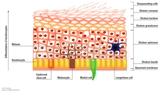 - Yousef, H.; Alhajj, M.; Sharma, S. Anatomy, Skin (Integument), Epidermis. In StatPearls [Internet]; StatPearls: Treasure Island, FL, USA, 2022. [Google Scholar]