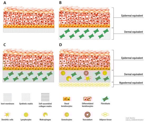 - Chau, D.Y.S.; Johnson, C.; Macneil, S.; Haycock, J.W.; Ghaemmaghami, A.M. The development of a 3D immunocompetent model of human skin. Biofabrication 2013, 5, 035011. [Google Scholar] [CrossRef] [PubMed]