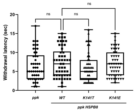 3.2. HSPB8 Transgenes Failed to Induce Sensory Phenotypes in the Drosophila Thermal Nociception Model