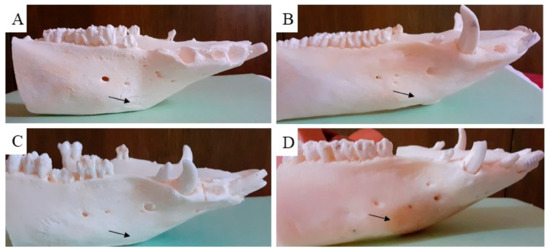 The pig was used as the most suitable animal model for the treatment of bone defects because pigs demonstrate similarities with human bone formation, function, healing characteristics, mineral density and bone mineral concentration [24,25]. The currently used surgical methods of mandible reconstruction require multiple surgeries to replace the bone at the defect site. The pig lower jaw may help to improve experimental medicine techniques for coordination of the teeth and mandible reconstructions, serving as a model for providing basic improvements to these methods for clinical use in human medicine in the future [26]. The pig lower jaw is also very important for studying of the mechanisms and processes that regulate the new bone formation during desmogenous ossification [27].
