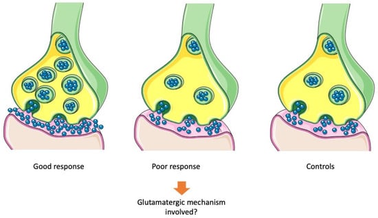 Schizophrenia has been prominently, albeit not exclusively, regarded as a dysfunction of central dopamine neurotransmission [,,]. From a neurobiological perspective, schizophrenia is considered a neurodevelopmental disorder with complex genetic architecture and pathophysiology []. Multiple genetic loci have been associated to schizophrenia, although the precise pathophysiological function of several genetic elements is yet to be determined []. However, schizophrenia has been considered a disorder of the transcriptome, and aberrant microRNAs may operate to affect the expression of genes implicated in neurodevelopment and in specific neurotransmitter signaling []. Among the more studied and corroborated pathophysiological hypotheses of schizophrenia are the dopaminergic dysregulation and the disturbed glutamatergic neurotransmission hypotheses []. The dopamine dysregulation hypothesis postulates that the presynaptic compartment is the major site of dopaminergic dysfunction and, specifically, elevated dopamine synthesis and release capacity []. However, several studies have also explored putative dysfunctions of D2 receptor levels at both pre and postsynaptic sites, as well as disturbance of D2-related postreceptor signaling []. One putative crucial pathophysiological mechanism, which may also be relevant to TRS, is an imbalance of dopamine–glutamate interplay occurring at the postsynaptic density, which is a protein mesh of the glutamatergic postsynapse devoted to integrating synaptic signaling from different afferent neurons [].