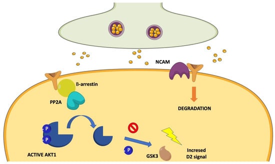 - Beaulieu, J.M.; Sotnikova, T.D.; Marion, S.; Lefkowitz, R.J.; Gainetdinov, R.R.; Caron, M.G. An Akt/beta-arrestin 2/PP2A signaling complex mediates dopaminergic neurotransmission and behavior. Cell 2005, 122, 261–273. [Google Scholar] [CrossRef]