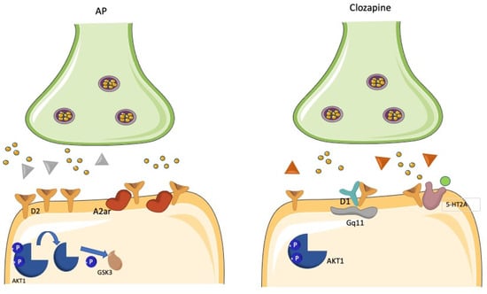 Moreover, a putative D2R-5HT1AR heterodimer has also been described in the mouse frontal cortex [,]. Notably, low-dose subchronic clozapine increases the levels of D2R-5HT1AR heterodimer in the prefrontal and frontal cortices of the mouse brain, while subchronic haloperidol lowers them []. Whether this heterodimer is present in human brains and which functional relevance, also in terms of putative differential neurobiological effects of clozapine compared to conventional antipsychotics, is yet to be determined.