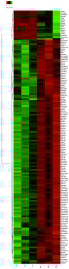 The libraries were sequenced to depths of up to 30 million single-end 75 nt length reads per sample using the Illumina NextSeq 500/550 High Output v2 kit (75 cycles) on an Illumina NextSeq 500 Sequencing System. This analysis pipeline is developed by the CLC Genomics workbench v20.0.3 software package. After removing the adaptor, rRNA, and low-quality sequences, the remaining reads were aligned onto the reference sequence of the mouse genome (GRCm38/mm10) using the TopHat2 splice-junction mapper and calculated expression value (reads per kilobase million/RPKM) of each gene. For the following statistic test and differential expression analysis, we used DEseq2 provided by iDEP.93 web application [http://bioinformatics.sdstate.edu/idep/ (accessed on 30 June 2021)]. to identify differentially expressed genes (DEG) between groups.