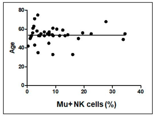 3.3.3. Correlations between Patients’ Age with Mu+ NK Cells Percentage
