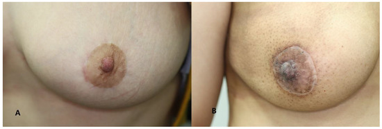This single-institution, prospective, observational study was conducted on patients who visited the Department of General Surgery and Plastic and Reconstructive Surgery at Kosin University Gospel Hospital between September 2019 and September 2020 and who underwent round block technique (RBT) breast reconstruction immediately after breast-conserving surgery. Patients who underwent surgery and treatment at the expected incision, patients who received preoperative radiation therapy, patients who planned to receive postoperative radiation therapy, patients with <1 year follow-up after surgery and patients who underwent additional procedures at the surgical site, steroid users, patients with skin diseases, and immunocompromised patients were excluded from the study. A total of 78 patients were included in the study. All participants in this study gave written informed consent for their medical information to be stored in the database and for this information to be used for research purposes. This study was conducted after approval by the Clinical Trial Review Committee of Kosin University Gospel Hospital (approval number KUGH-2020-01-014).