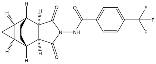 - Jakovlevich, B.E.F.; Bormotov, N.I.; Balakhnin, S.M.; Serova, O.G.A.; Svjatchenko, V.A.; Kiselev, N.N.; Kazachinskaja, E.I.; Loktev, V.B.; Drozdov, I.J.G.; Stavskij, E.A. 7-[N’-(4-trifluoromethylbenzolyl)-hydrazinocarbonyl]-tricyclo[3.2.2.02,4]non-8-ene-6-carboxylic acid, Having Antiviral Activity. Russian Patent Number RU2412160C1, 20 February 2011. [Google Scholar]