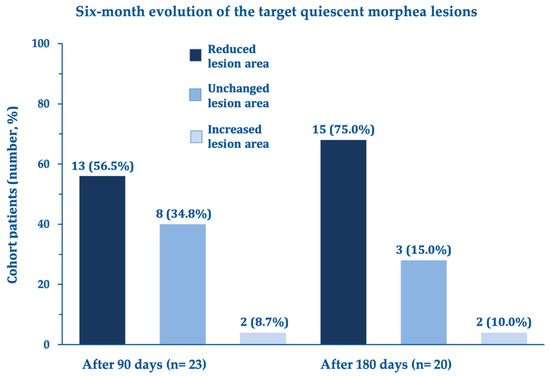 Exclusion criteria were steroid or systemic immunosuppressive therapy within one month before the screening, pregnancy, breastfeeding and unreliable contraception, ongoing infections in target areas, and any concomitant disorder or situation that could negatively affect compliance with study procedures (administration of at least 80% of the planned doses). The one-month washout also allowed for verifying the persistent lack of inflammatory activity in the morphea lesions. The enrolled patients had the right to withdraw from the study for any reason freely.