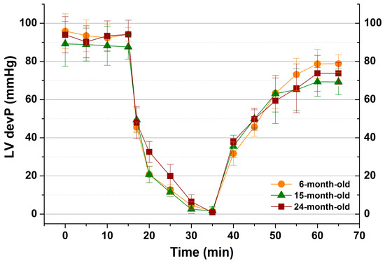 Cardiovascular diseases are the leading cause of death worldwide, taking more than 17.9 million lives each year (one-third of all deaths worldwide), with more than four out of five deaths due to heart attack or stroke [1]. Despite reduced mortality due to important advances in the treatment of myocardial infarction (therapeutic targets, peptides, drugs), there is a need to limit the extent of infarct size after reperfusion injury, thus preventing the onset and severity of heart failure [2]. The role of age in tolerance to ischemic injury has been studied for several decades, but the results are controversial [3,4,5,6]. Some studies suggest that tolerance to ischemia–reperfusion injury, and its prevention by preconditioning, decreases with age [5,6,7,8], while other studies show that tolerance to ischemia or ischemic preconditioning is not changed during aging [3]. Aging elevates the susceptibility of the heart to ischemia and myocardial infarction [9], with the highest occurrence (over 50%) of ischemic heart diseases in people older than 70 [10]. Moreover, heart contractility recovery is also attenuated by age, thus influencing the therapeutic effect and intervention time point, which differ between young and elderly patients.