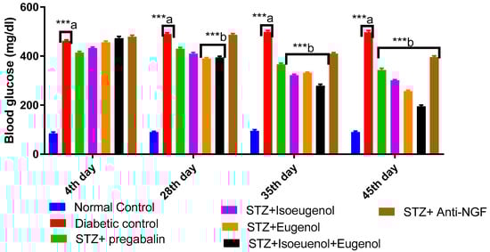 | STZ + isoeugenol + eugenol | 16.04 ± 6.71 ***,b |