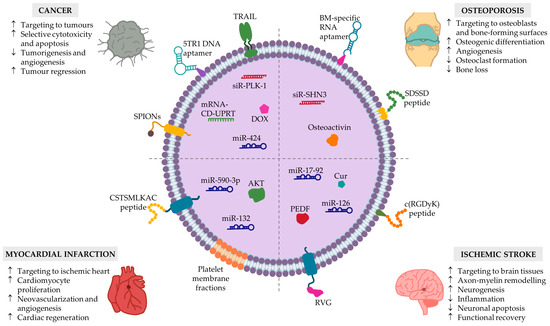 - Tian, T.; Zhang, H.-X.; He, C.-P.; Fan, S.; Zhu, Y.-L.; Qi, C.; Huang, N.-P.; Xiao, Z.-D.; Lu, Z.-H.; Tannous, B.A.; et al. Surface functionalized exosomes as targeted drug delivery vehicles for cerebral ischemia therapy. Biomaterials 2018, 150, 137–149. [Google Scholar] [CrossRef]