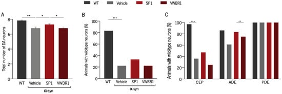 - Marques, C.R.; Pereira-Sousa, J.; Teixeira, F.G.; Sousa, R.A.; Teixeira-Castro, A.; Salgado, A.J. Mesenchymal Stem Cell Secretome Protects against Alpha-Synuclein-Induced Neurodegeneration in a Caenorhabditis Elegans Model of Parkinson’s Disease. Cytotherapy 2021. [Google Scholar] [CrossRef]