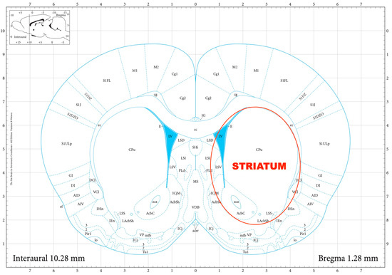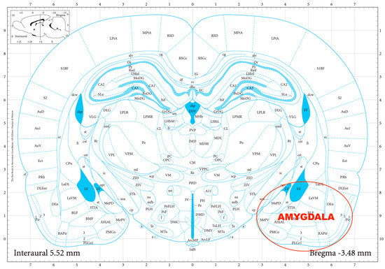 - Paxinos, G.; Watson, C. The Rat Brain in Stereotaxic Coordinates, 6th ed.; Academic Press/Elsevier: Amsterdam, The Netherlands; Boston, MA, USA, 2007. [Google Scholar]
