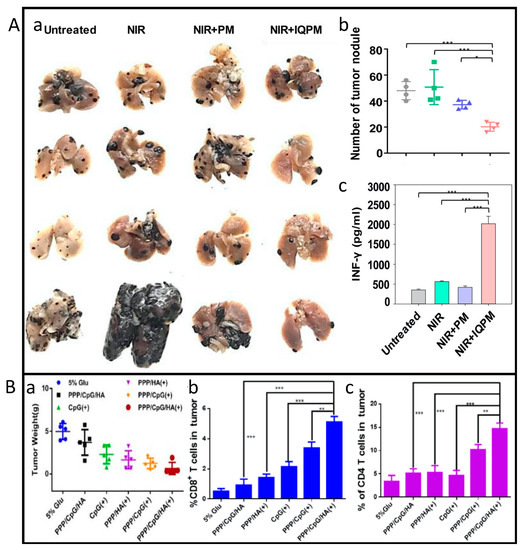 - Lin, X.; Wang, X.; Li, J.; Cai, L.; Liao, F.; Wu, M.; Zheng, D.; Zeng, Y.; Zhang, Z.; Liu, X. Localized NIR-II photo-immunotherapy through the combination of photothermal ablation and in situ generated interleukin-12 cytokine for efficiently eliminating primary and abscopal tumors. Nanoscale 2021, 13, 1745–1758. [Google Scholar] [CrossRef]