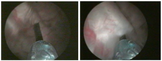 Each injection was 1 mL (10 U/1 mL of saline solution), preferably into the trabeculae, with a maximum depth of 5 mm (Figure 3). Particular attention was paid to exclude trigone and blood vessels from the injection [7].