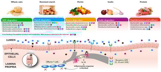 - Flint, H.J.; Bayer, E.A.; Rincon, M.T.; Lamed, R.; White, B.A. Polysaccharide utilization by gut bacteria: Potential for new insights from genomic analysis. Nat. Rev. Microbiol. 2008, 6, 121–131. [Google Scholar] [CrossRef] [PubMed]