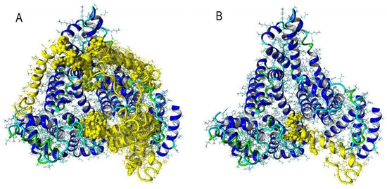 - Hornak, V.; Abel, R.; Okur, A.; Strockbine, B.; Roitberg, A.; Simmerling, C. Comparison of multiple Amber force fields and development of improved protein backbone parameters. Proteins 2006, 65, 712–725. [Google Scholar] [CrossRef]