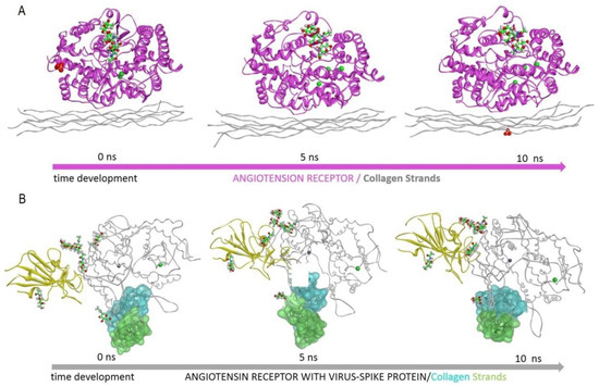 4.3.1. ACE2-Receptor/Spike Protein and Collagen Complexes