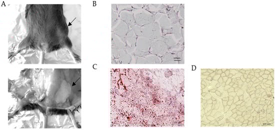 22]. The fat accumulations in the hips of the mice do not have a key role in the pathological mechanism of dysferlinopathies, but they suggest the presence of a metabolic response due to the sedentary nature of Dysf