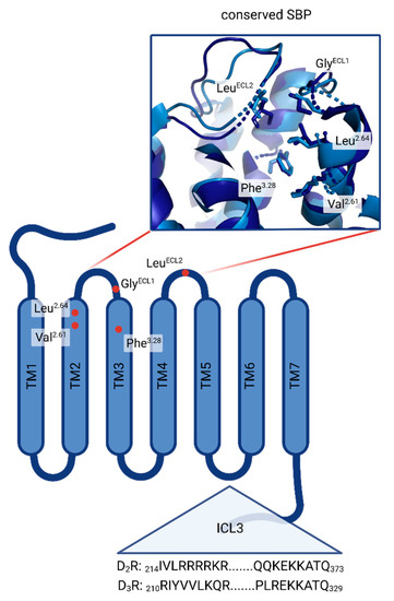 - Floresca, C.Z.; Schetz, J.A. Dopamine receptor microdomains involved in molecular recognition and the regulation of drug affinity and function. J. Recept. Signal Transduct. Res. 2004, 24, 207–239. [Google Scholar] [CrossRef] [PubMed]