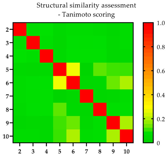 2.3. Similarity Assessment—Tanimoto Scoring (TS) Matrix