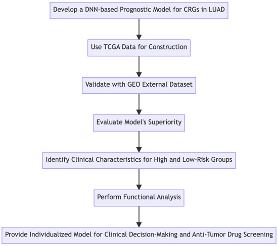 The flowchart of our study is illustrated in Figure 1. We started by collecting data from The Cancer Genome Atlas (TCGA) and the Gene Expression Omnibus (GEO) databases. Following data collection, we conducted a differential expression analysis to screen for differentially expressed genes. Based on these results, we constructed a prognostic model using Deep Neural Network (DNN) techniques. This model was then validated using independent data from the GEO database. Lastly, we performed functional analysis and evaluated the performance of our model, focusing on its ability to predict the prognosis of lung adenocarcinoma (LUAD) based on cuproptosis-related genes (CRGs).