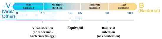 - Stein, M.; Shapira, M.A.; Bamberger, E.; Chistyakov, I.; Dumov, D.; Srugo, I.; Bont, L.J.; Klein, A. BV score differentiates viral from bacterial-viral co-infection in adenovirus PCR positive children. Front. Pediatr. 2022, 10, 990750. [Google Scholar] [CrossRef]