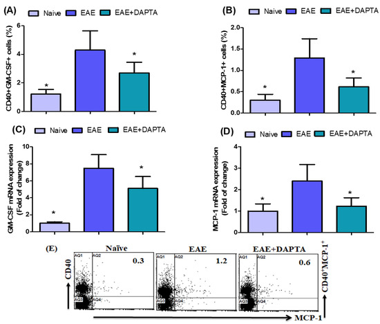 3.3. DAPTA Downregulates GM-CSF and MCP-1 Expression in EAE Mice