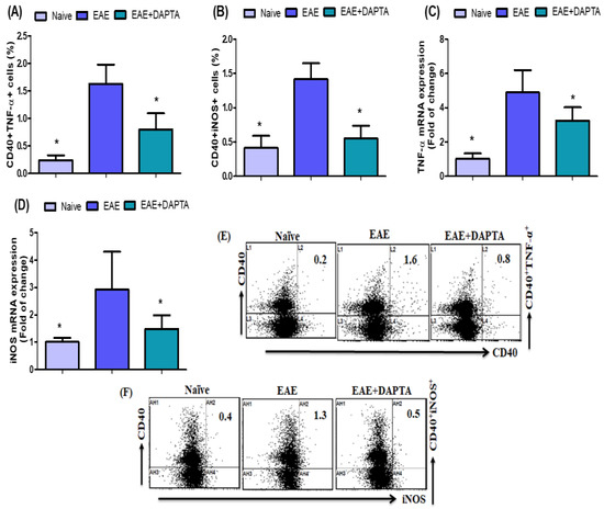 3.4. DAPTA Downregulates Proinflammatory Mediators in EAE Mice