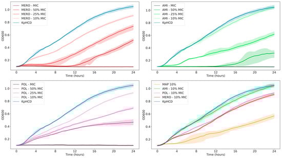 3.2. KpHCD1 Growth Curve in the Presence of Antibiotics