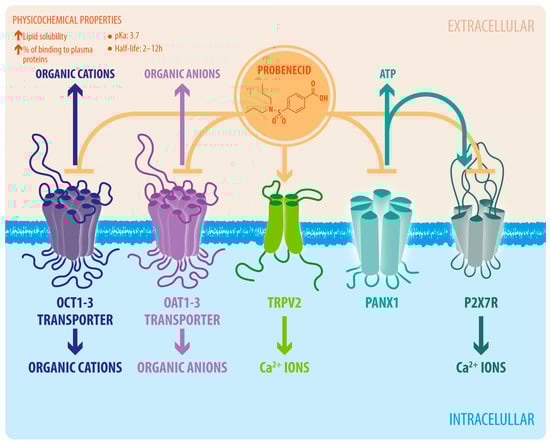 - Robbins, N.; Koch, S.E.; Tranter, M.; Rubinstein, J. The History and Future of Probenecid. Cardiovasc. Toxicol. 2012, 12, 1–9. [Google Scholar] [CrossRef]
