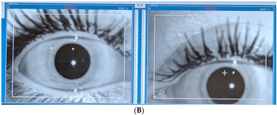 Pupillometry of both eyes. (A) Use of the pupillometry device. (B) Changes detected in the pupil, where the miosis and mydriasis described above are observed.