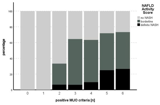 The proportion of positive MUO criteria in relation to the NAFLD activity score is shown in Figure 1.