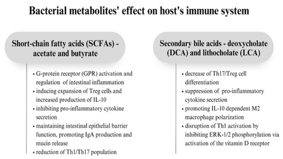 Summary of the effect of bacterial metabolites on the host’s immune system.