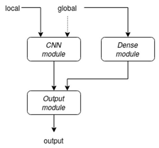 The best configuration resulted in being the one with the global information concatenated just before the output layer and without it being injected at the first layer. It appears that the two modules can learn the features more accurately if the two types of information are kept separated as long as possible, only merging them towards the end. In fact, a module that processes local information will train slower compared to one that uses global information from some kind of pre-trained input.