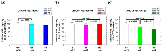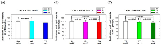 3.5. Effects of Risk XRCC4 and XRCC6 Genotypes on NHEJ Repair Capacity