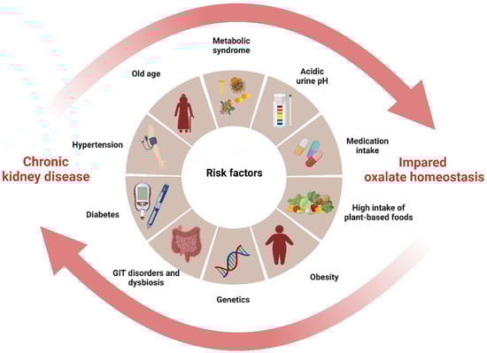 One of the possible strategies for preventing CKD progression is to modify the risk factors associated with altered oxalate homeostasis. These include lifestyle modifications such as dietary modifications, increased fluid intake, and increased physical activity, as well as the management of underlying conditions such as metabolic syndrome, diabetes, hypertension, and obesity.